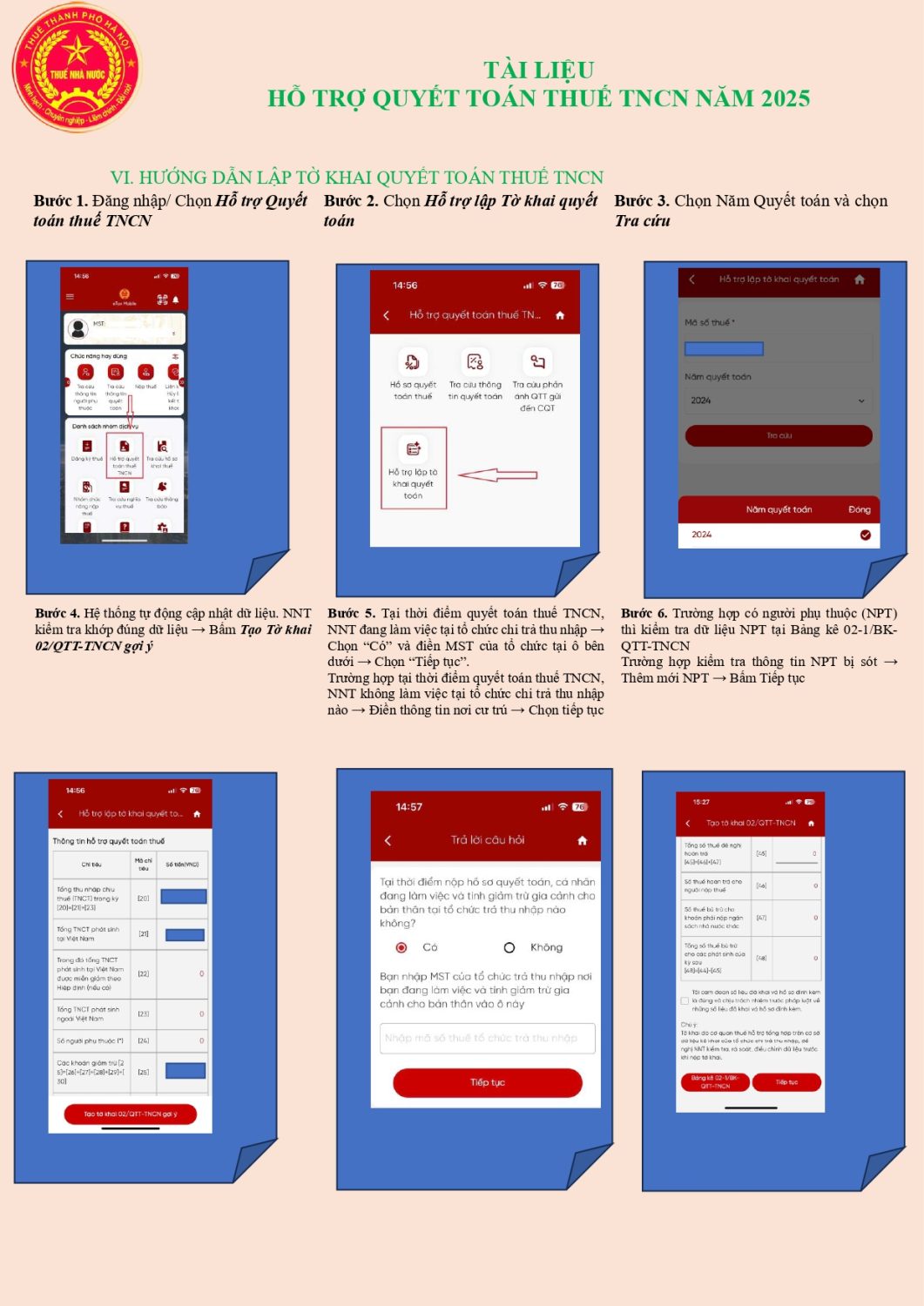 Bộ tài liệu hướng dãn quyết toán trên Etax Mobile bao gồm 7 nội dung như sau: