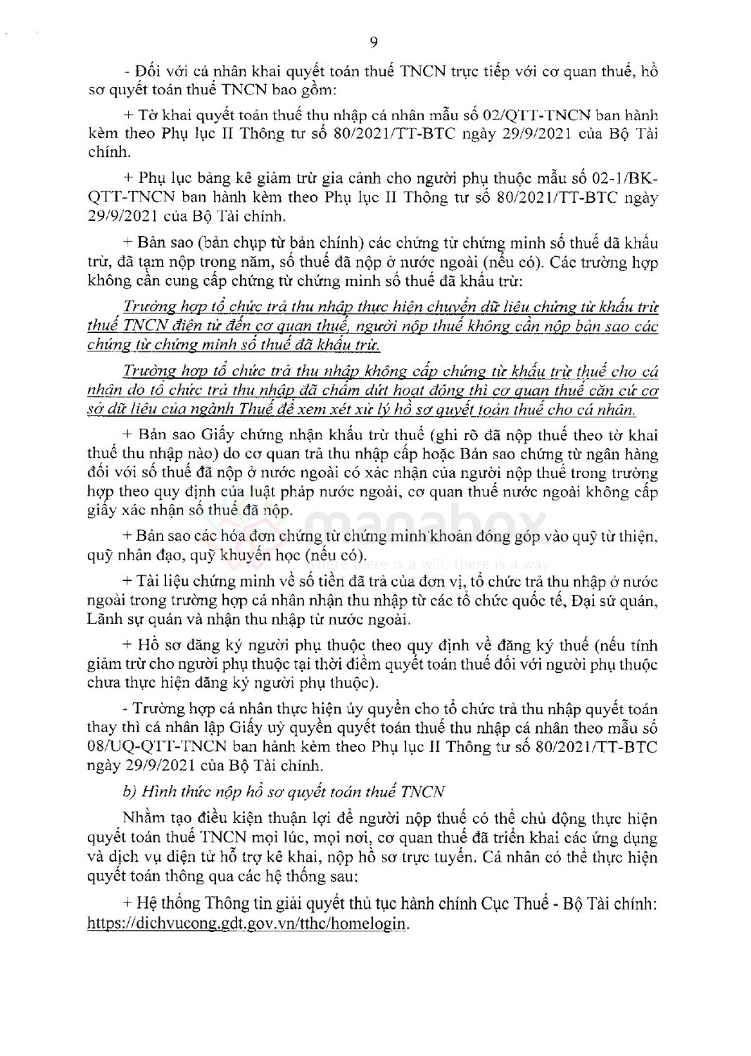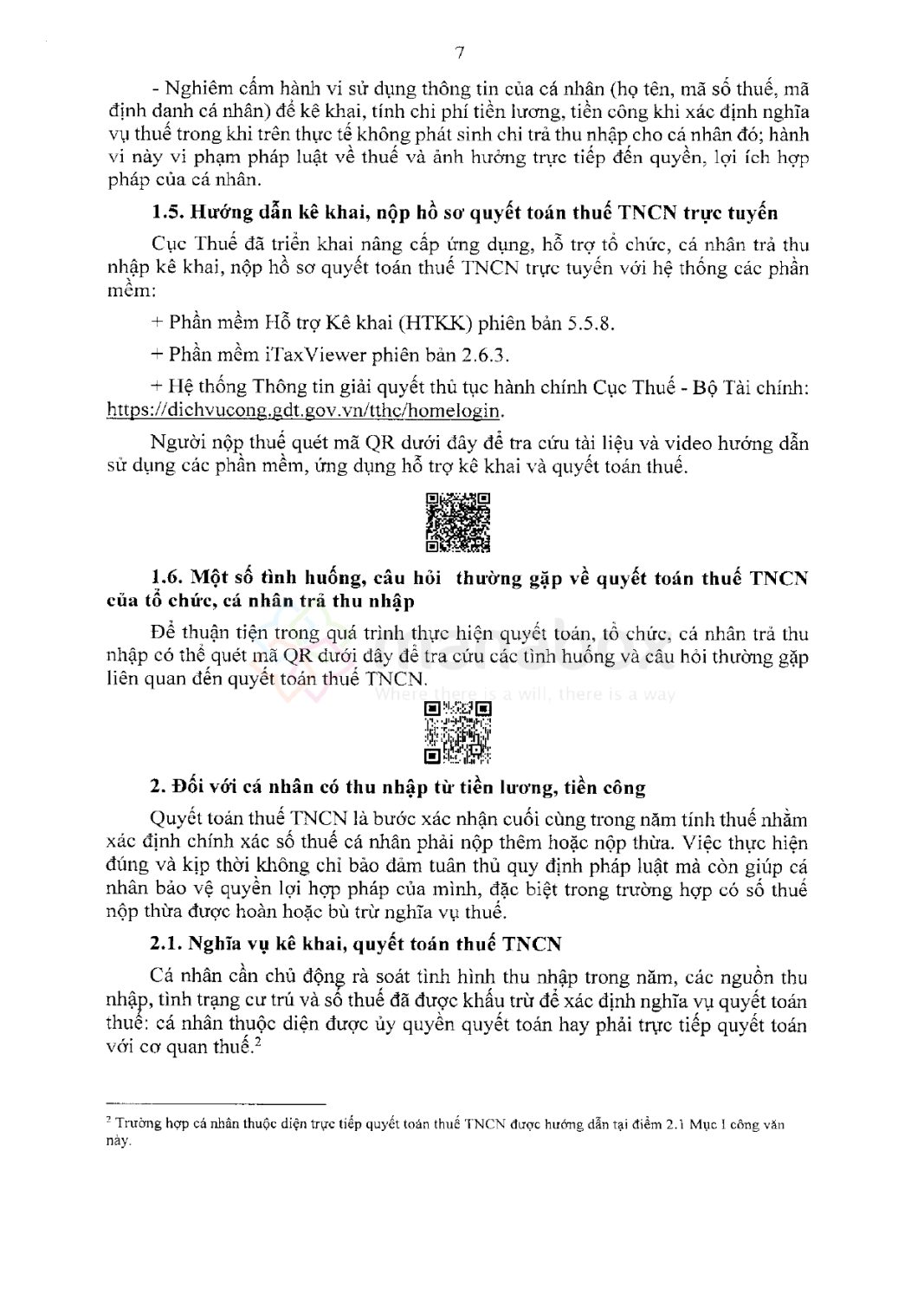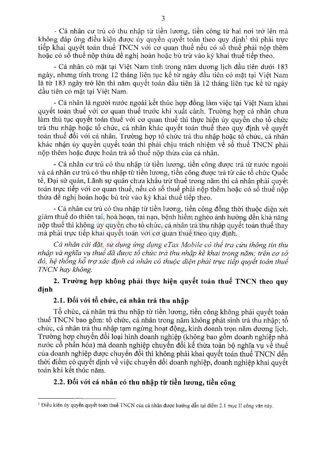 [2] Trường hợp cá nhân thuộc diện trực tiếp quyết toán thuế TNCN được hướng dẫn tại điểm 2.1 Mục I công văn này.