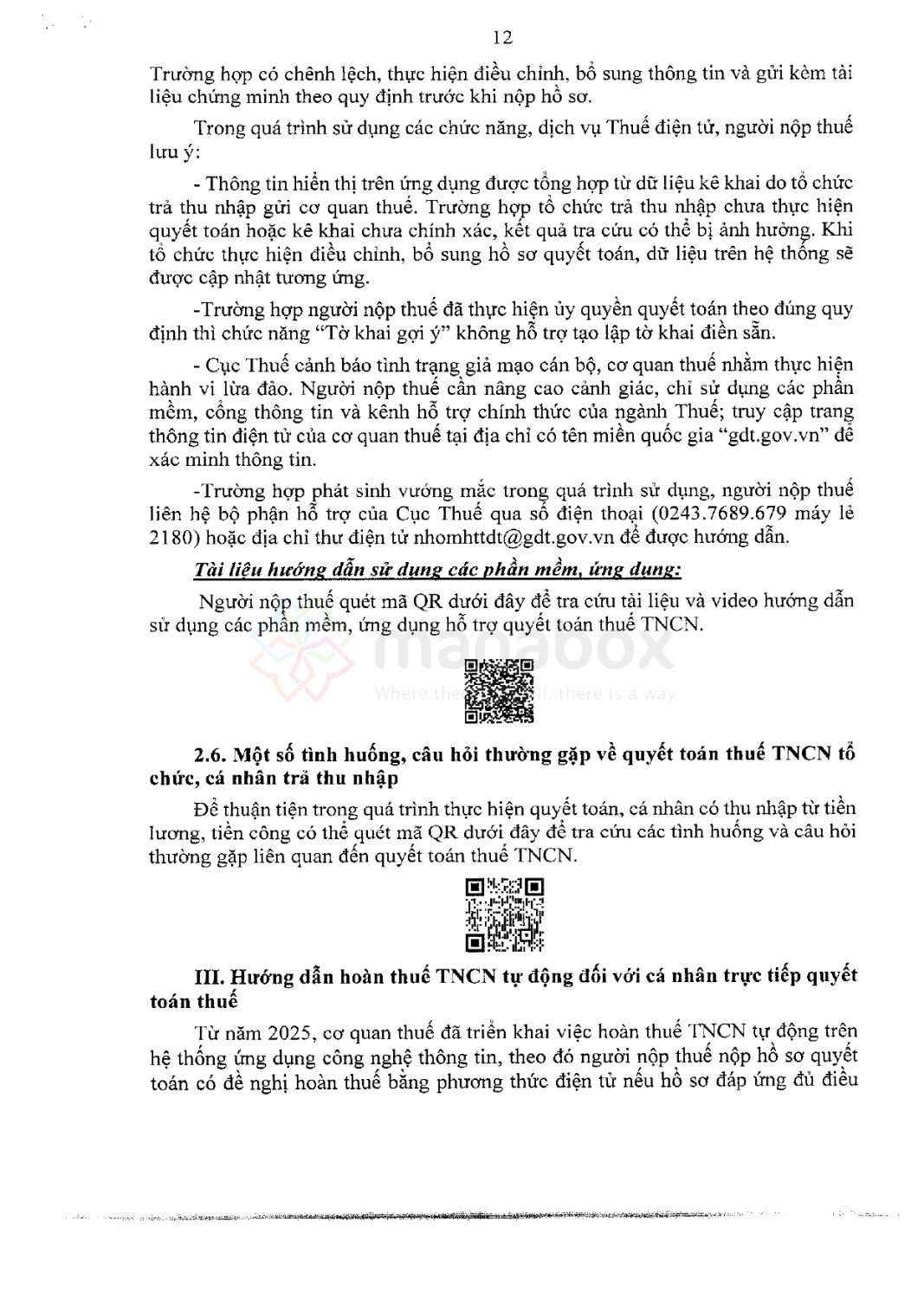 Người nộp thuế quét mã QR dưới đây để tra cứu tài liệu và video hướng dẫn sử dụng các phần mềm, ứng dụng hỗ trợ quyết toán thuế TNCN.