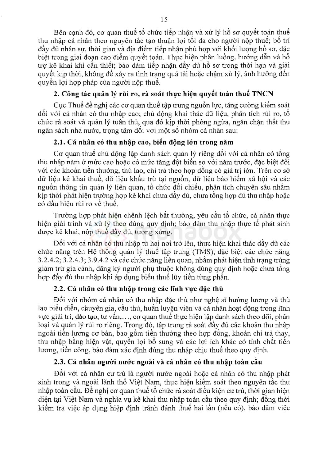 - Công tác quản lý rủi ro, rà soát thực hiện quyết toán thuế TNCN