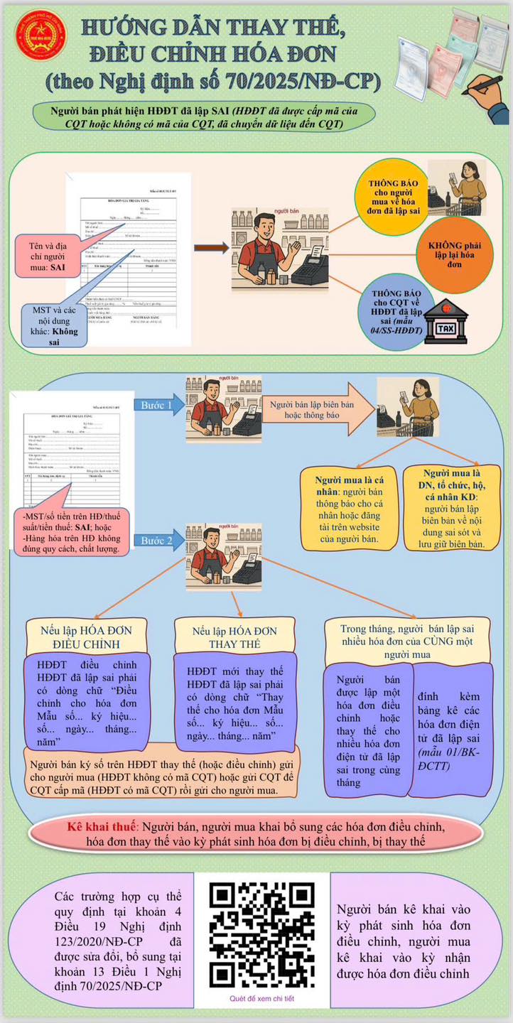 Dưới đây là hướng dẫn tổng hợp, chi tiết và dễ hiểu về tất cả các trường hợp lập điều chỉnh hóa đơn theo Nghị định số 70/2025/NĐ-CP