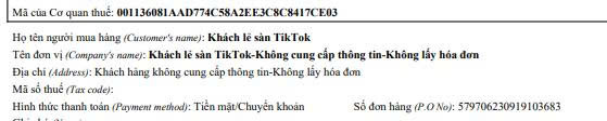 Tên người mua: ghi “Người mua không lấy hóa đơn”.