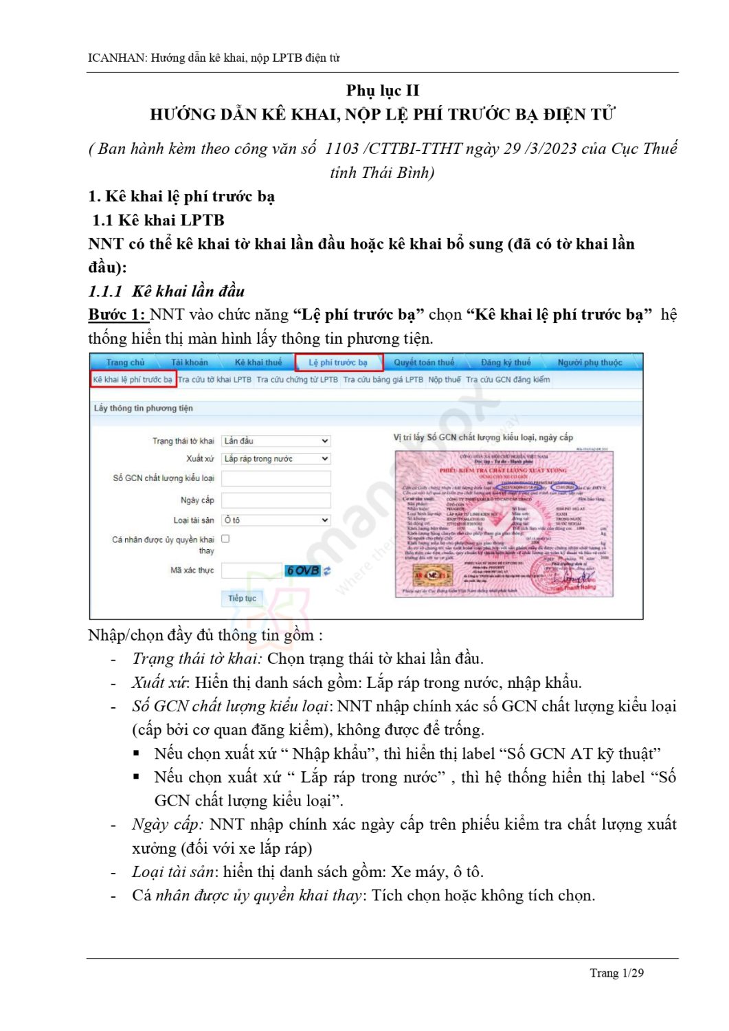 Bài viết hướng dẫn Khai lệ phí trước bạ online phương tiện với Người nộp thuế có tài khoản định danh điện tử VNeID mức độ 2 hoặc tài khoản thuế điện tử tại Cổng dịch vụ công của Cục Thuế. Người nộp thuế đã có các thông tin về hóa đơn điện tử, giấy chứng nhận an toàn kỹ thuật và bảo vệ môi trường/Phiếu xuất xưởng do người bán cung cấp.