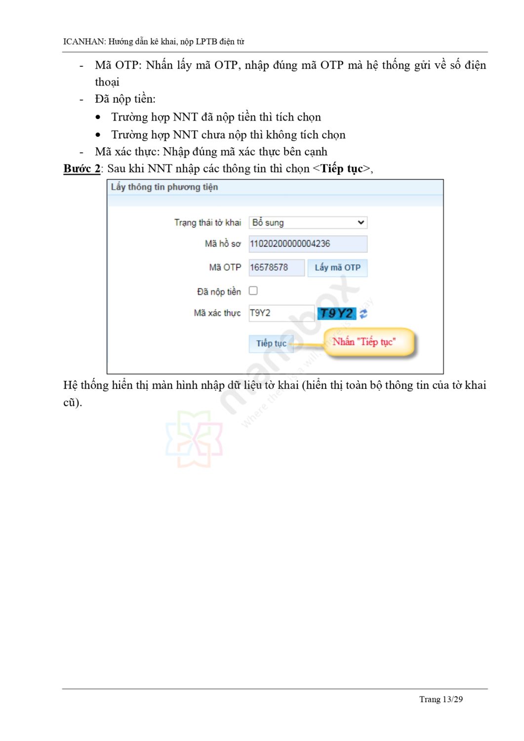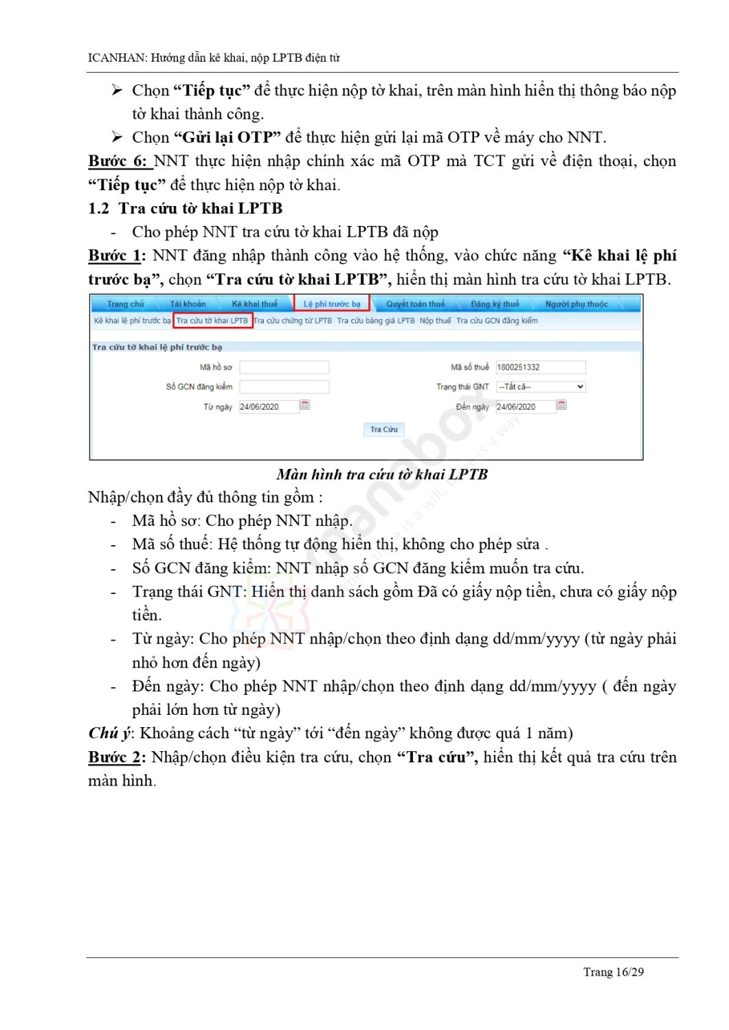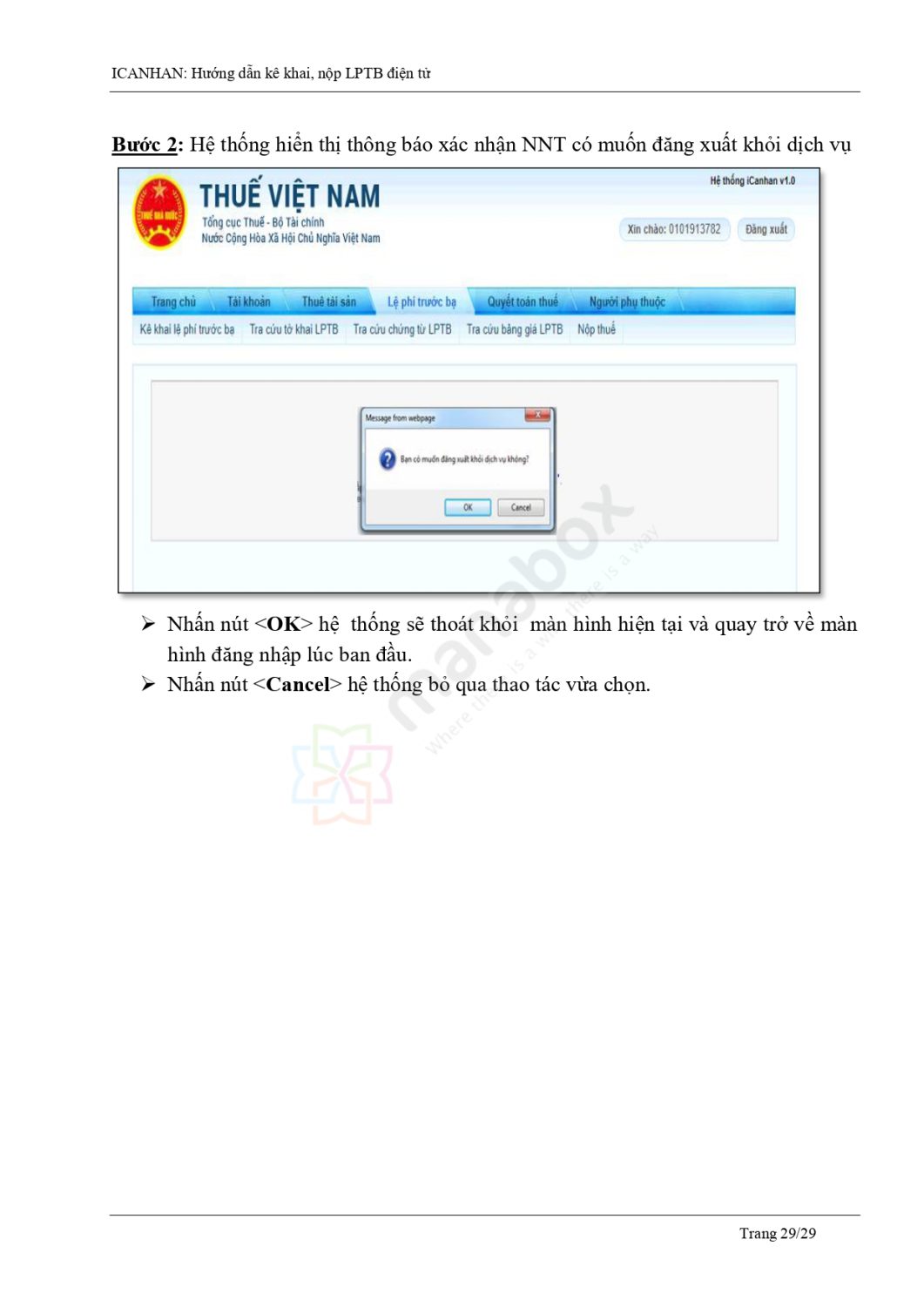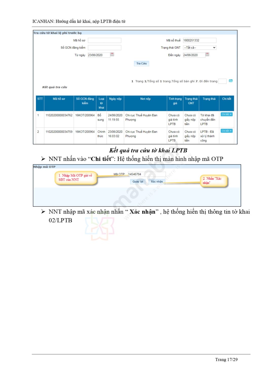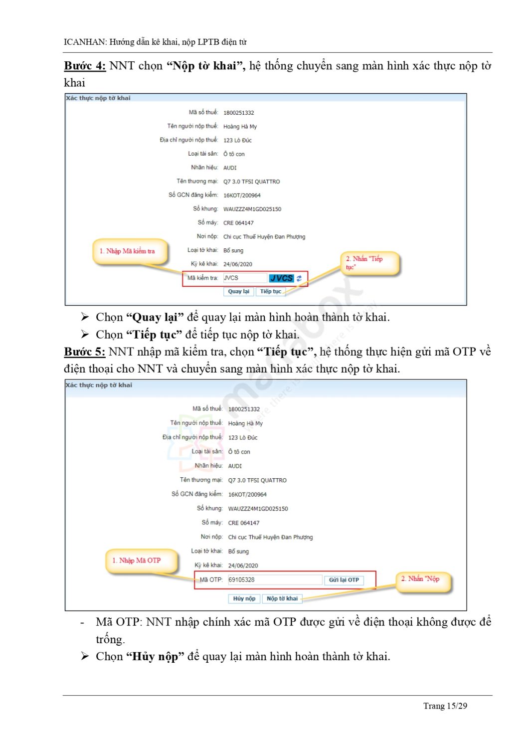 Bước 5: Cổng Dịch vụ công gửi thông báo chấp nhận hồ sơ khai thuế điện tử và Thông báo nộp LPTB vào địa chỉ thư điện tử của người nộp thuế, đồng thời gửi thông tin mã hồ sơ, số thuế LPTB phải nộp đến số điện thoại đã kê khai của người nộp thuế.