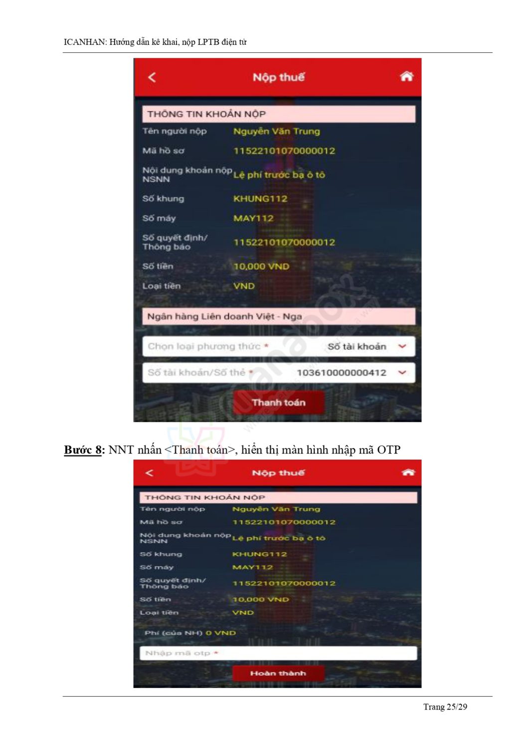 Bước 2: Người nộp thuế xác nhận giao dịch nộp thuế.