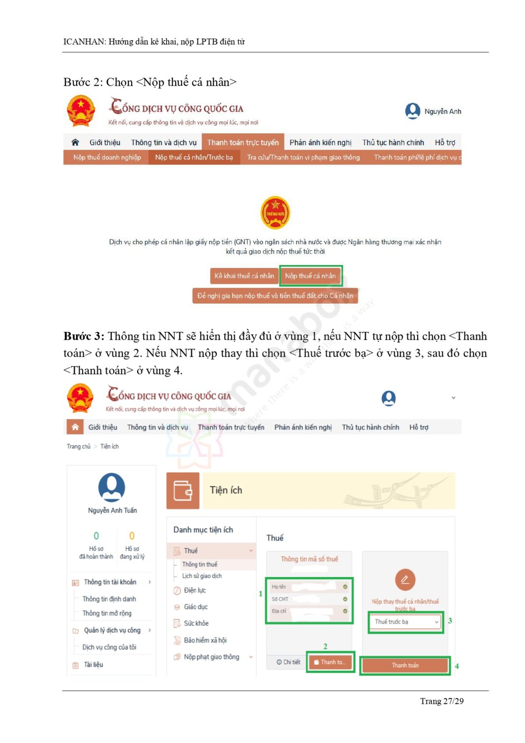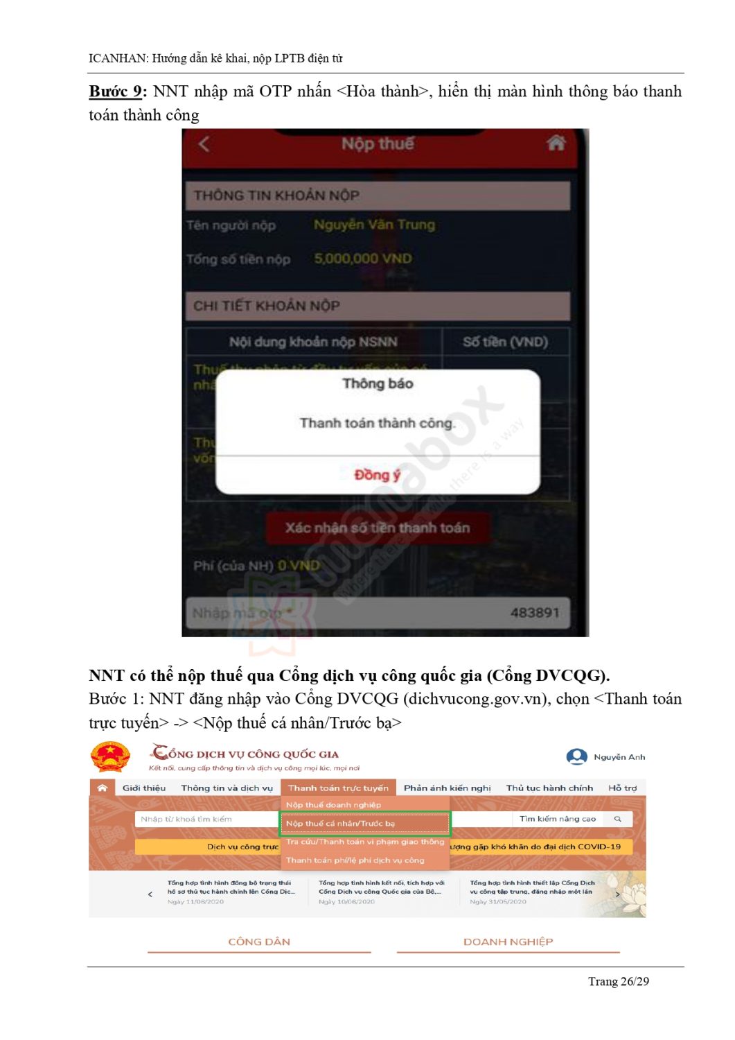 Người nộp thuế có thể nộp LPTB qua ứng dụng eTax Mobile, nộp qua các ứng dụng Mobile Banking của các ngân hàng thương mại, nộp qua Cổng Dịch vụ công hoặc nộp trực tiếp tại kho bạc nhà nước, ngân hàng thương mại.