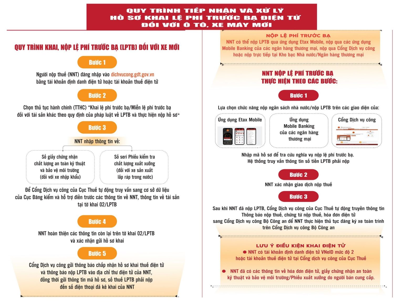 Bước 3: Sau khi người nộp thuế đã nộp LPTB, Cổng Dịch vụ công của Cục Thuế tự động truyền thông tin Thông báo nộp thuế, chứng từ nộp thuế, hóa đơn điện tử sang Cổng Dịch vụ công Bộ Công an để người nộp thuế thực hiện thủ tục đăng ký xe toàn trình trên Cổng Dịch vụ công Bộ Công an.
