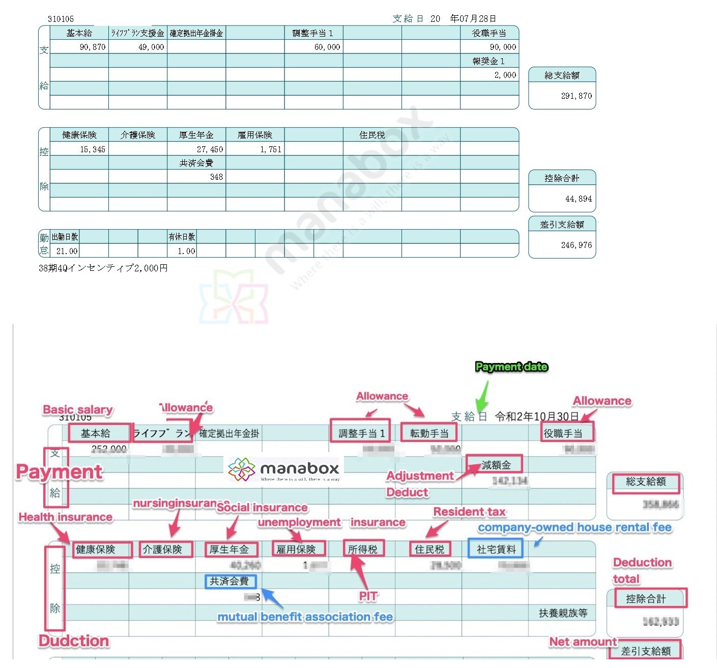 Phiếu lương/ bảng lương nước ngoài (ví dụ bảng lương Nhật).
