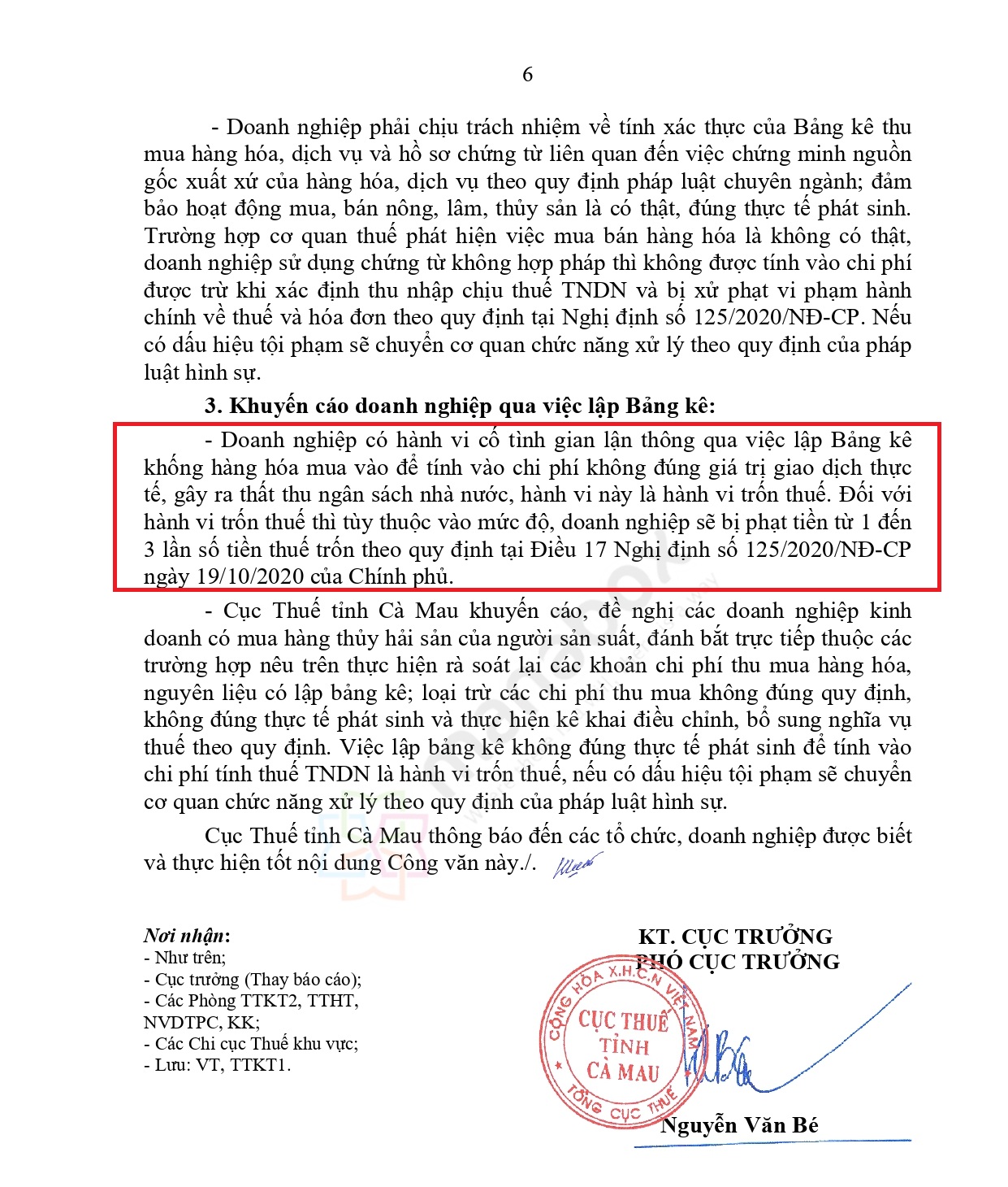Người ký không phải người trực tiếp sản xuất, đánh bắt, cung cấp. |