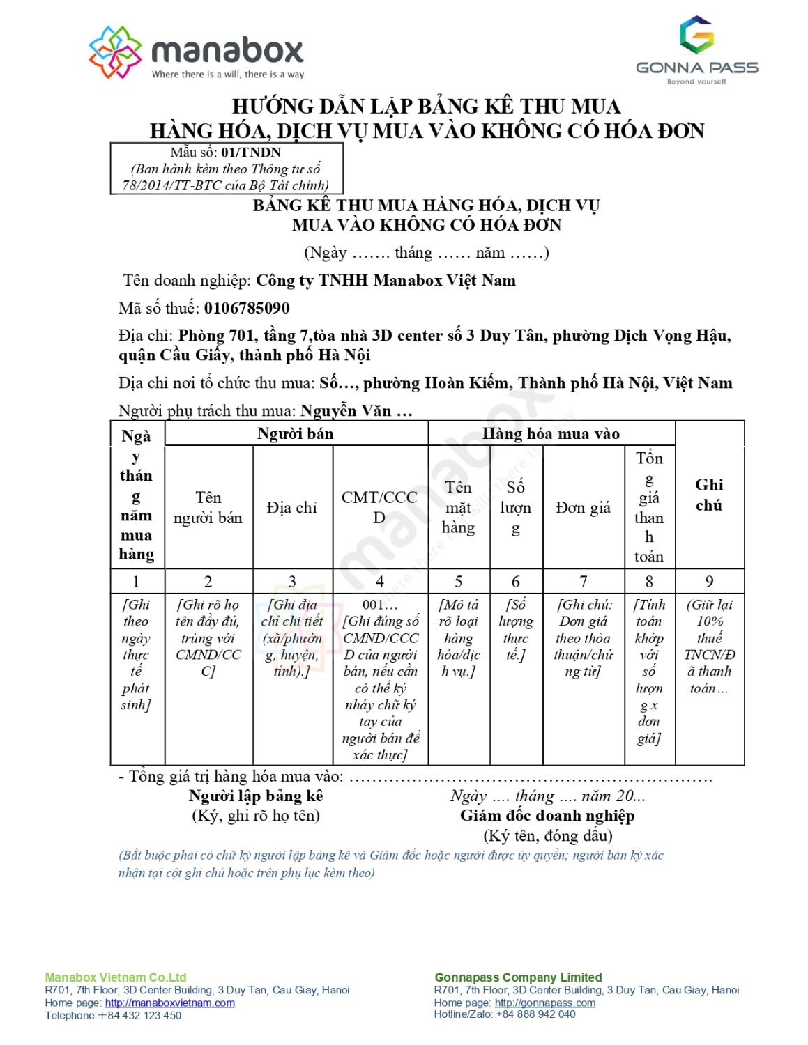 Cách lập mẫu 01/TNDN và trường hợp cần lưu ý không được lập bảng kê