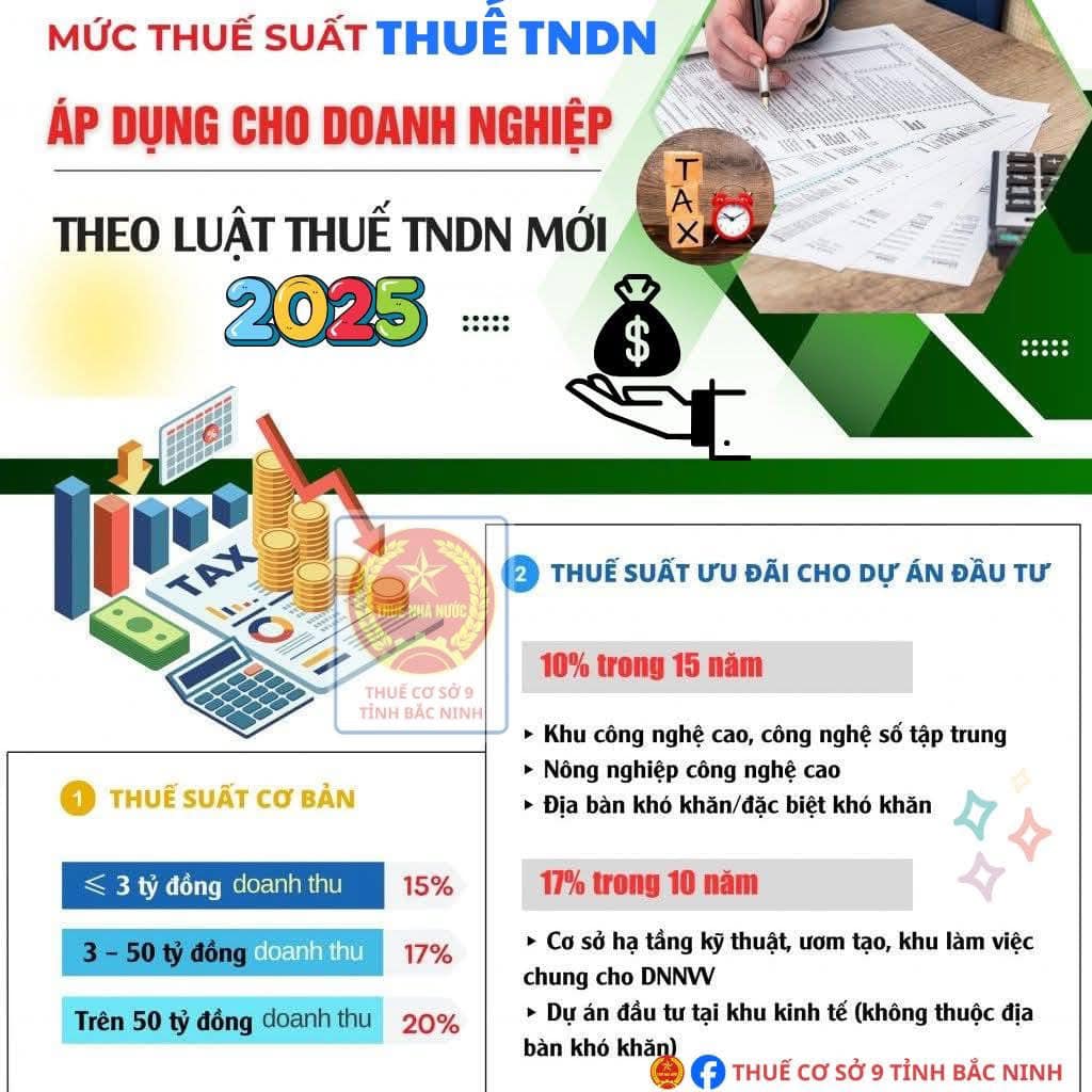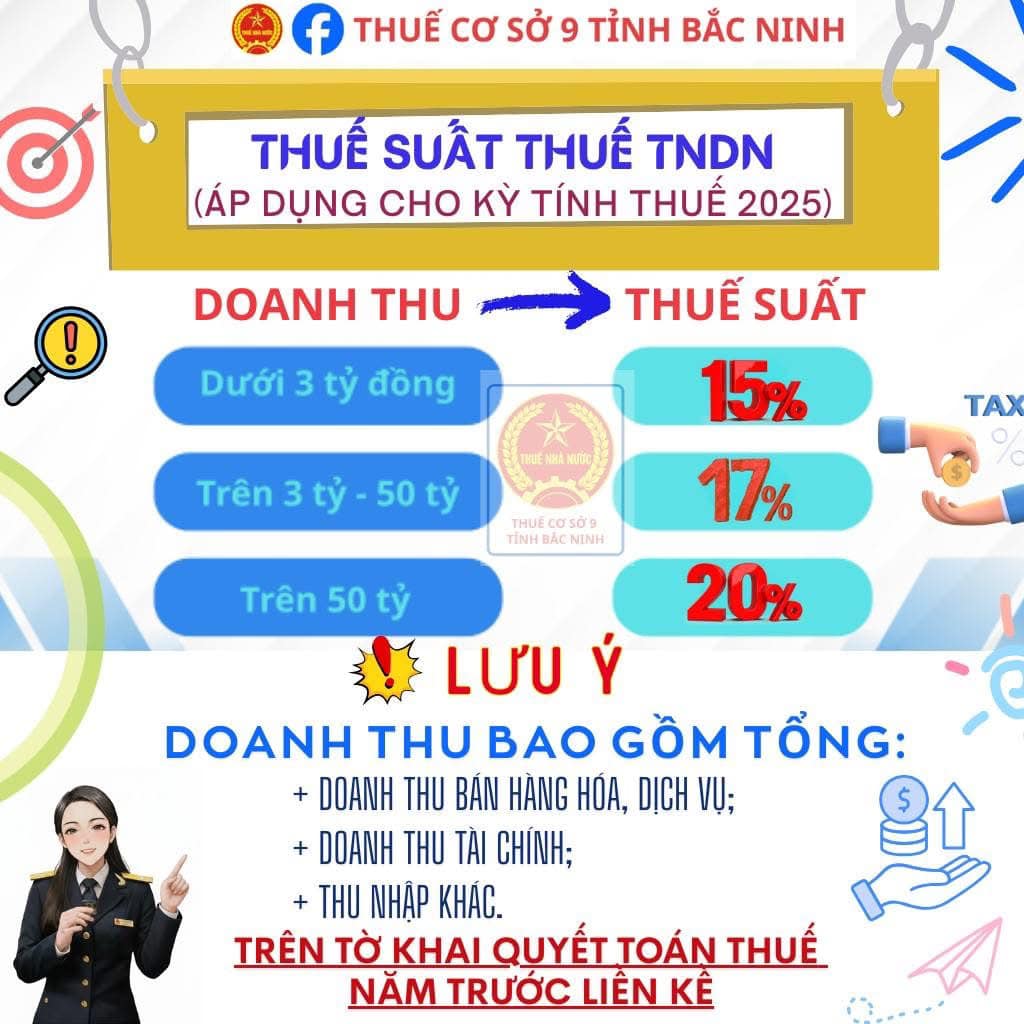 Kể từ kỳ tính thuế năm 2025, mức thuế suất TNDN không còn cào bằng 20% mà được phân chia dựa trên quy mô doanh thu: