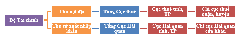 Các cơ quan quản lý thu thuế được phân chia theo phạm vi nguồn thu theo sơ đồ:
