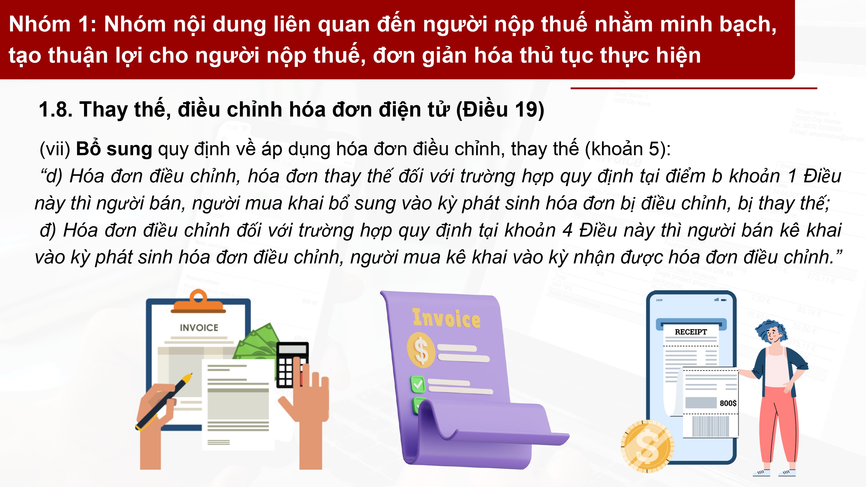 Căn cứ vào hóa đơn điều chỉnh, bên bán và bên mua kê khai điều chỉnh doanh thu mua, bán, thuế đầu ra, đầu vào tại kỳ lập hóa đơn điều chỉnh.