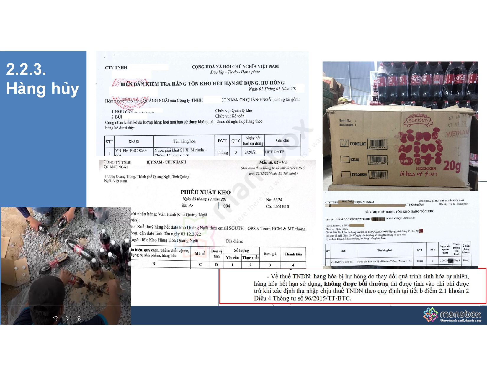 2/ Thành lập Hội đồng hủy hàng, Biên bản xác minh chất lượng hàng hủy, Đề nghị hủy hàng tồn kho đã hết hạn sử dụng…: