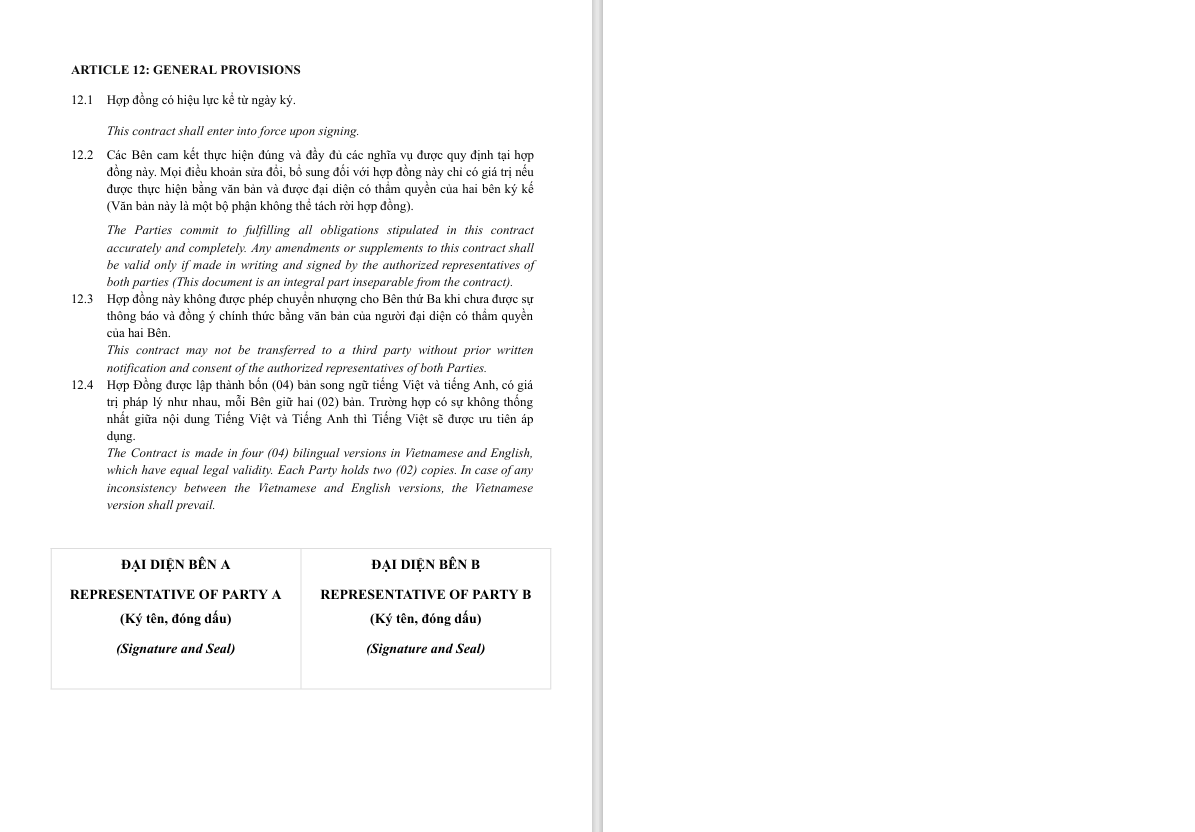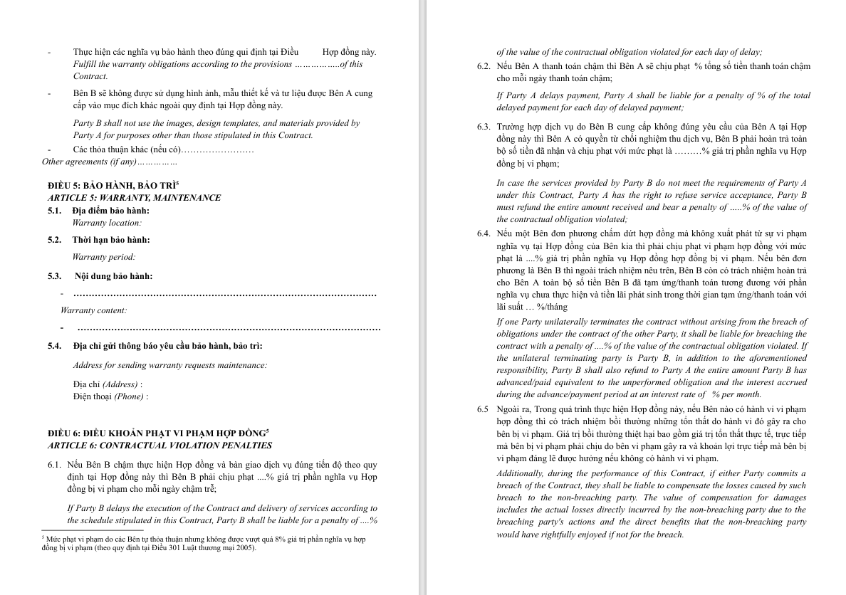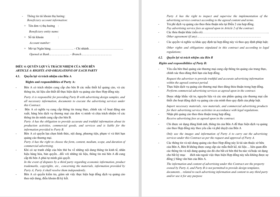 2. Mẫu hợp đồng dịch vụ quảng cáo bản Song ngữ (Việt – Anh)