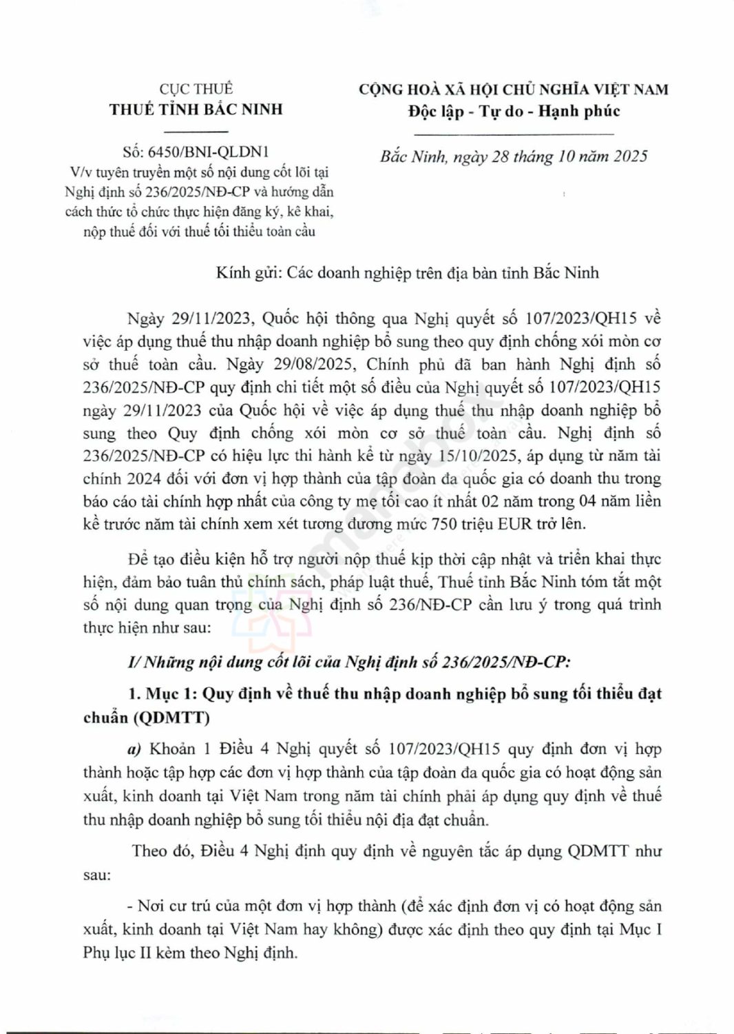 | 29/11/2023 | Quốc hội ban hành Nghị quyết 107/2023/QH15 về thuế tối thiểu toàn cầu | Văn bản Quốc hội |