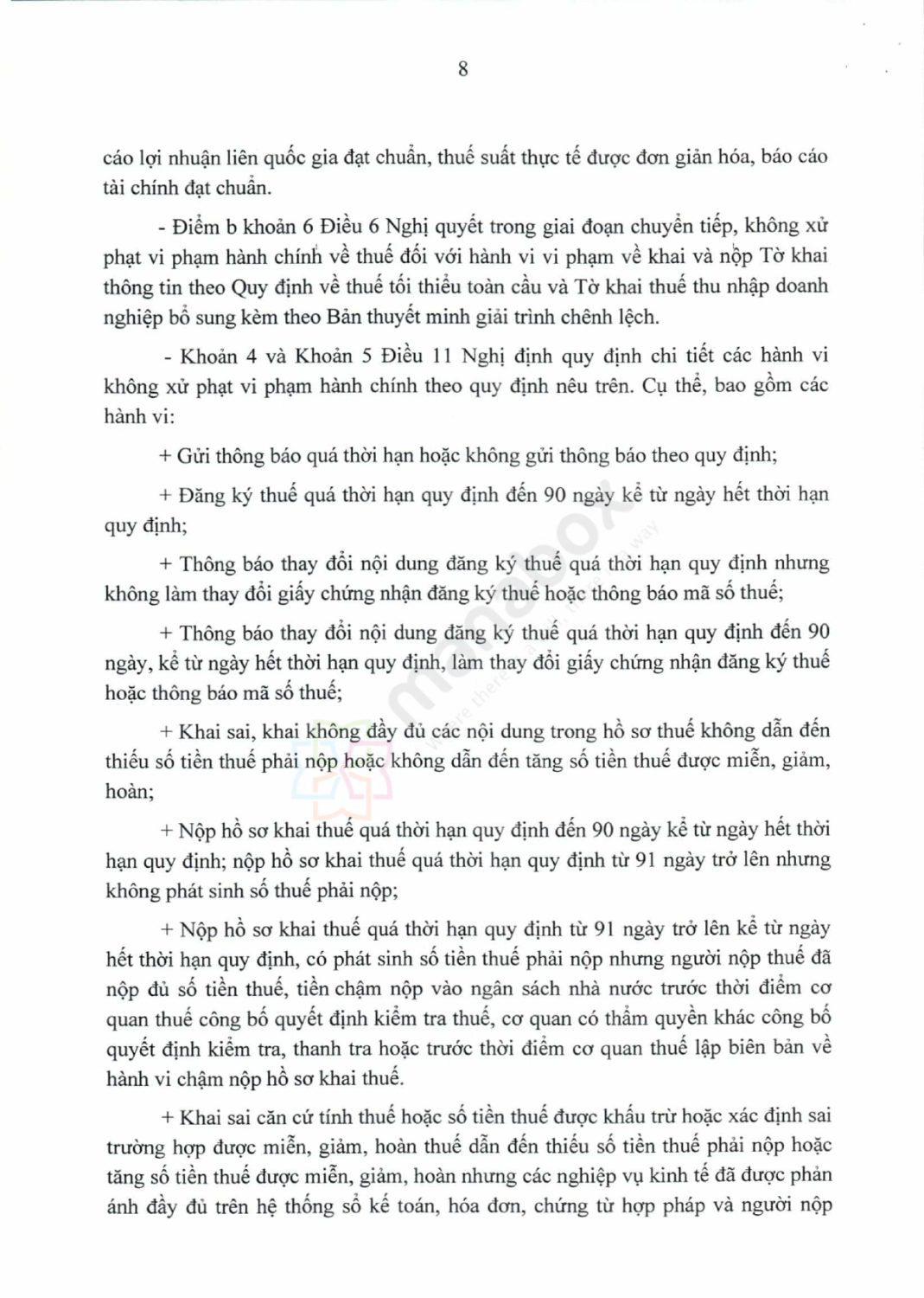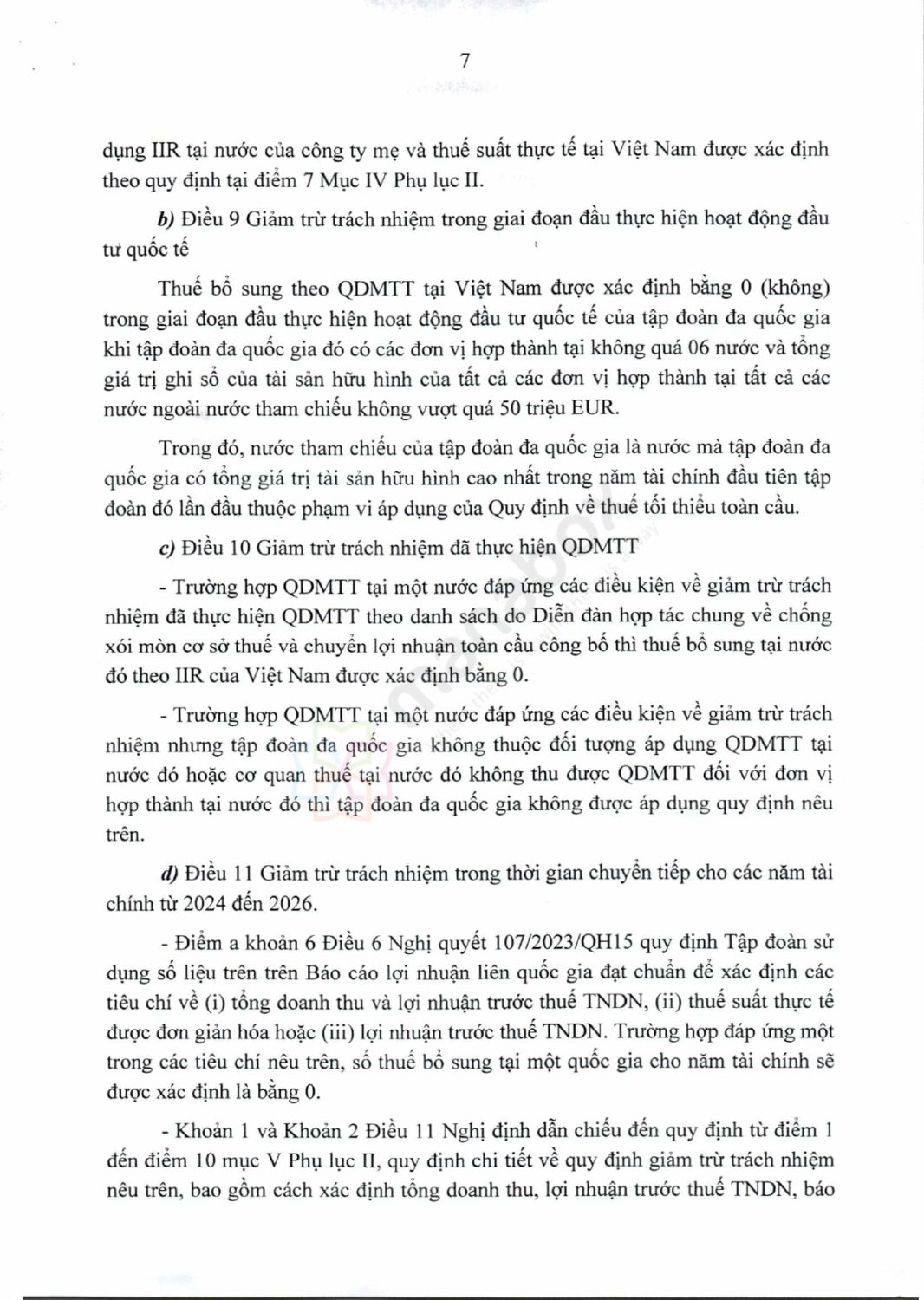 | Giai đoạn chuyển tiếp: 2024 – 2026 | Không xử phạt vi phạm hành chính thuế trong các trường hợp vi phạm nhỏ liên quan đến nghĩa vụ kê khai và nộp thuế theo QDMTT/IIR | Điều 11 Dự thảo Nghị định |