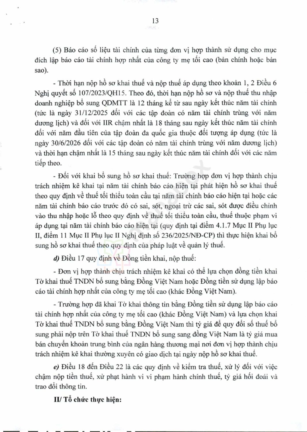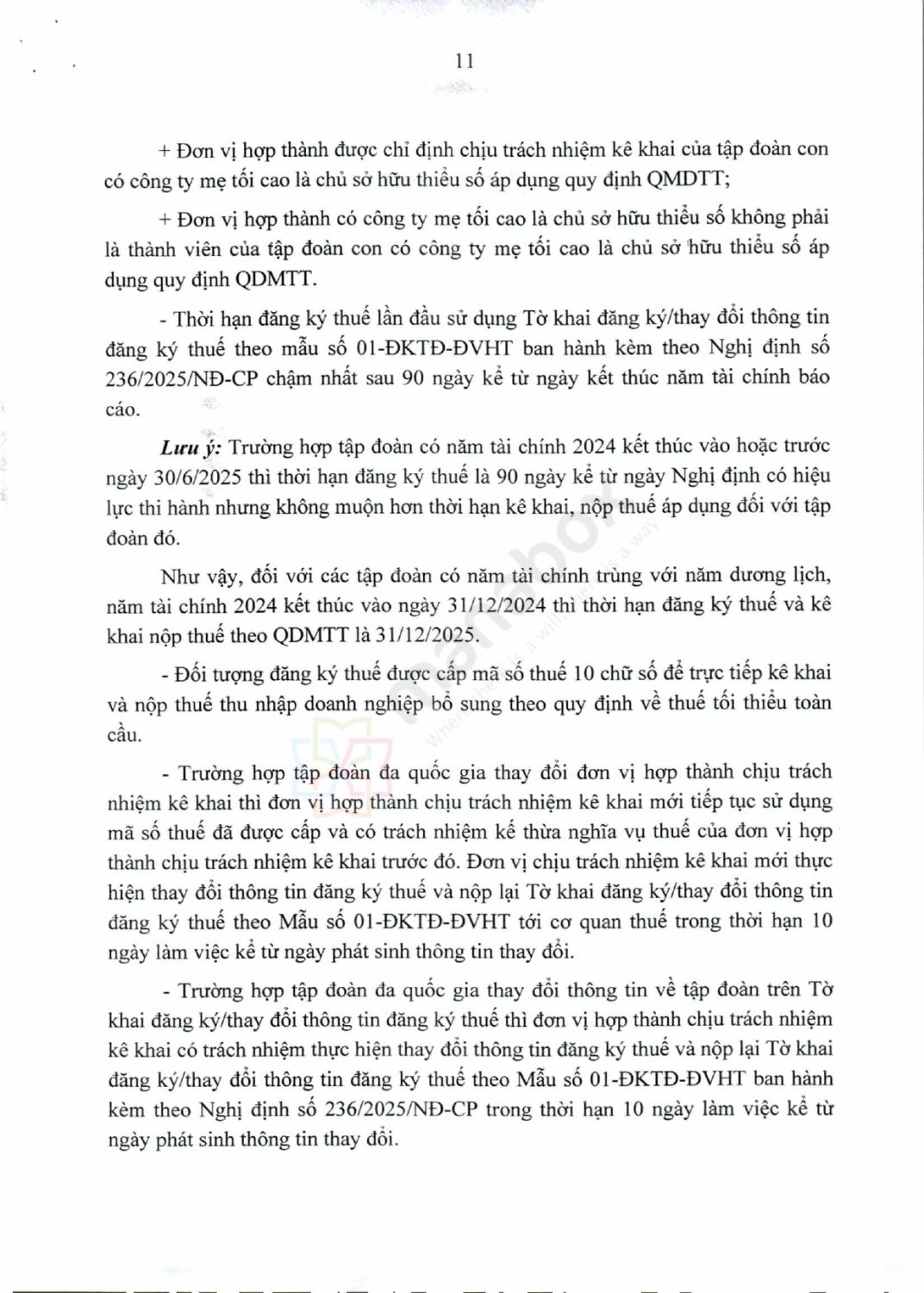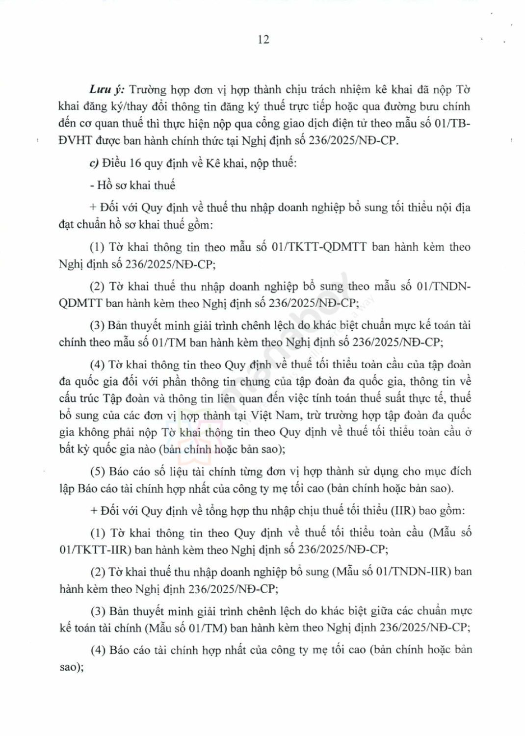 | Từ năm 2025 | Bắt đầu nộp tờ khai thuế và thông tin cho năm tài chính 2024 theo các quy định mới (QDMTT: 12 tháng sau năm tài chính, IIR: 15–18 tháng) | Dự thảo Nghị định |