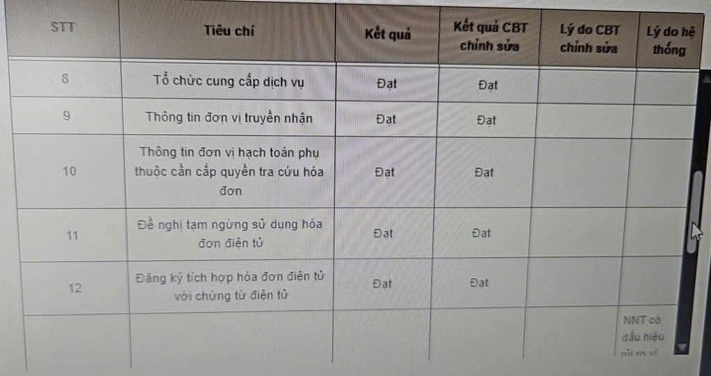 | 2 | Không thuộc thời gian ngừng sử dụng hóa đơn điện tử | Đạt |