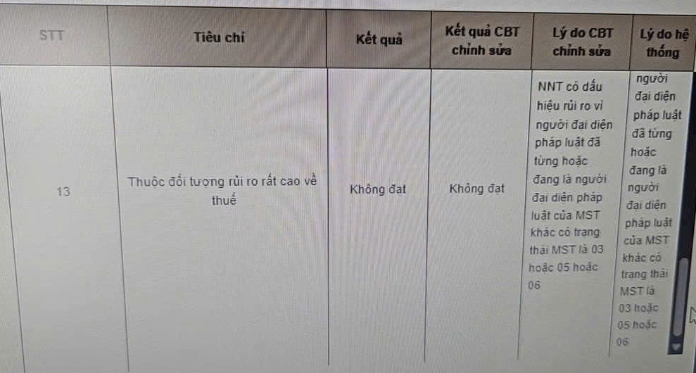 | 13 | Không thuộc đối tượng rủi ro rất cao về thuế |