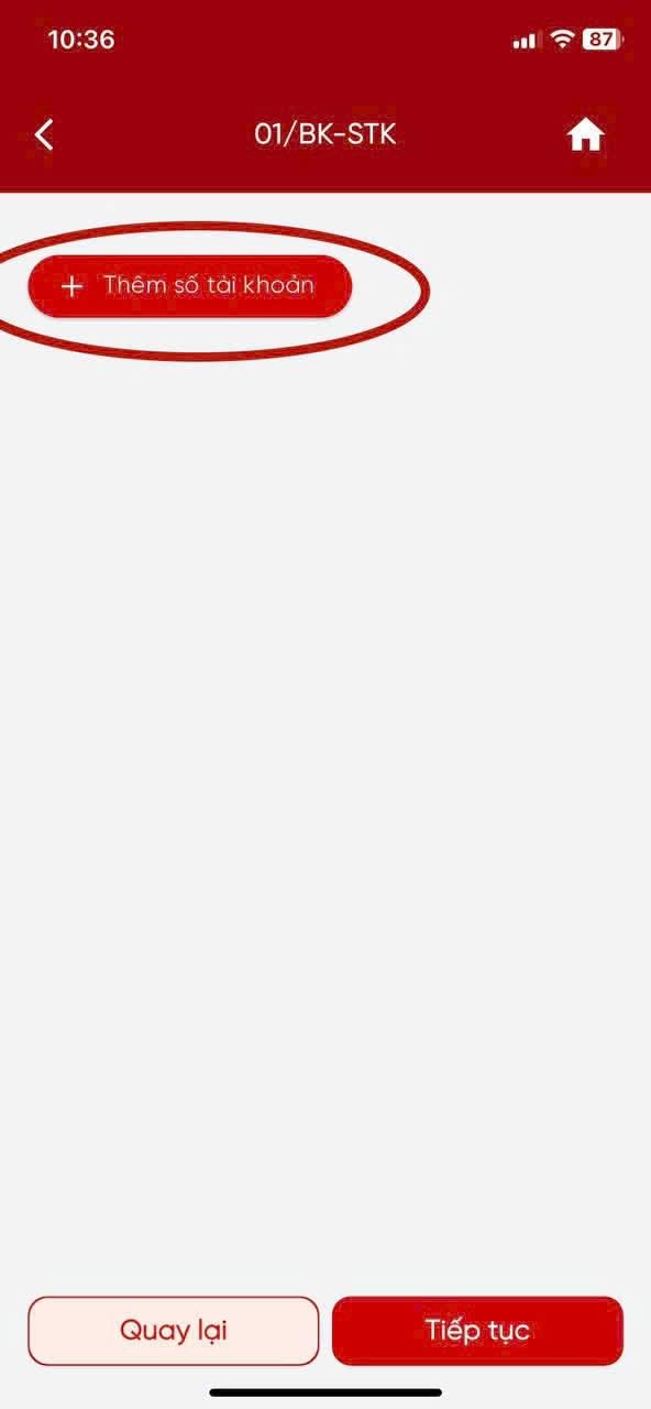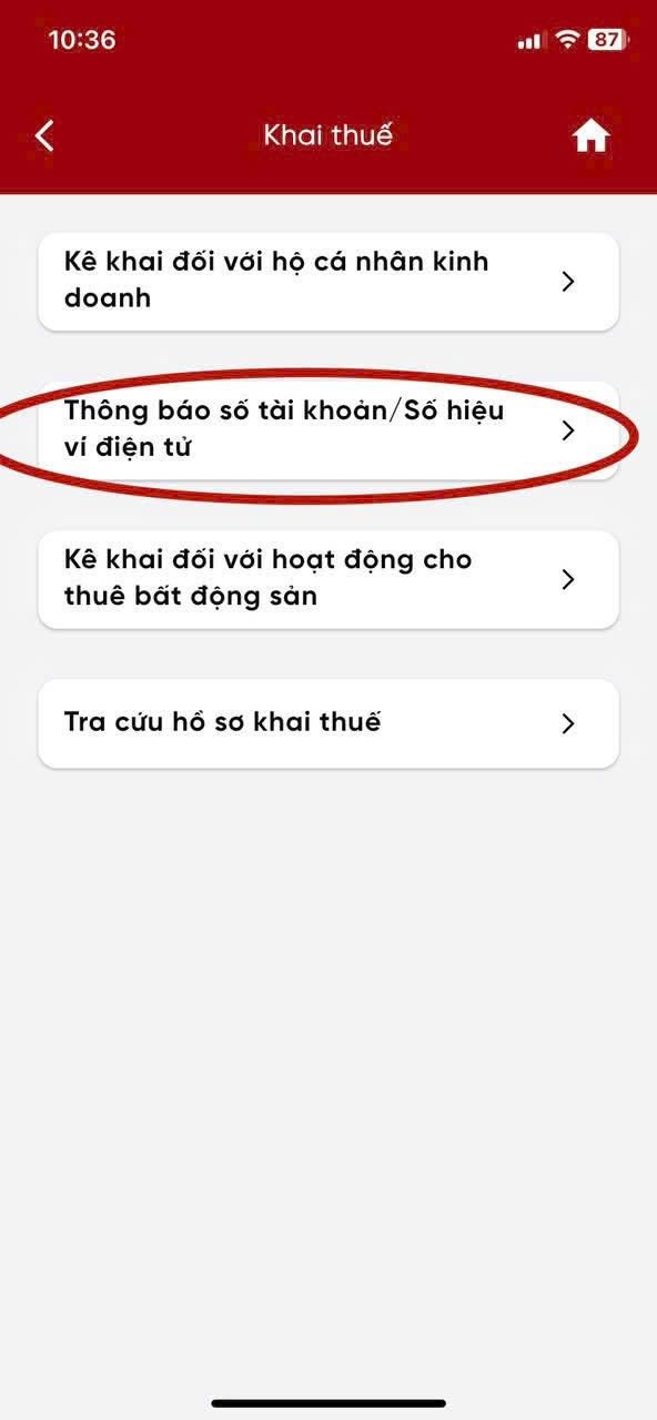 Bước 7: Người nộp thuế chọn Mục “Thông báo số tài khoản/số hiệu ví điện tử (Vòng tròn màu xanh)