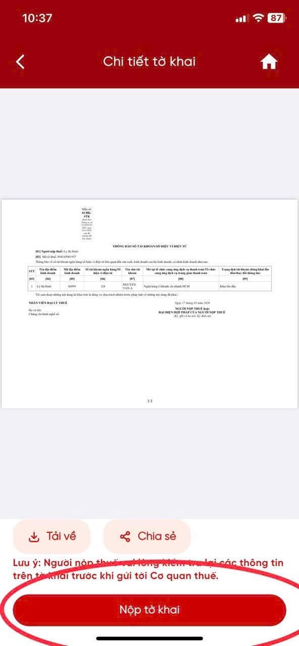 Hộ kinh doanh chưa có tài khoản hoặc tài khoản chưa đúng thông tin cần khẩn trương liên hệ ngân hàng để mở mới hoặc điều chỉnh trước thời điểm quy định.