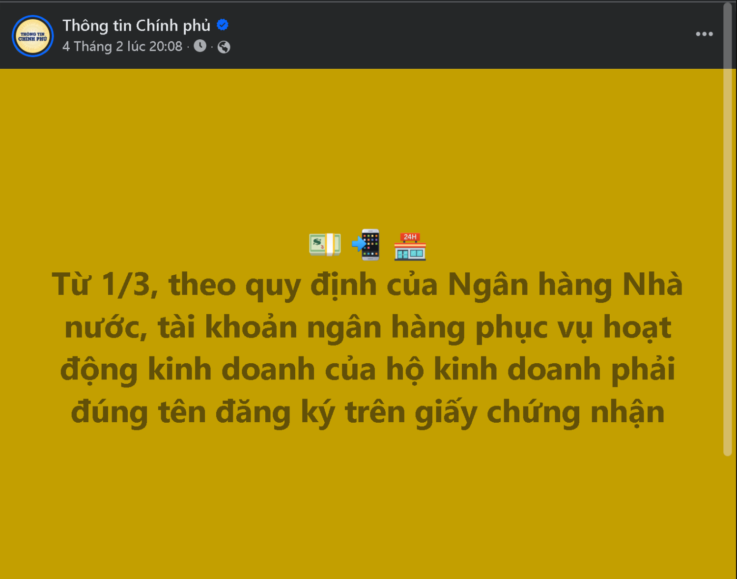 TỪ NGÀY 01/03/2026: HỘ KINH DOANH BẮT BUỘC PHẢI MỞ TÀI KHOẢN NGÂN HÀNG ĐÚNG TÊN CHỦ HỘ KINH DOANH