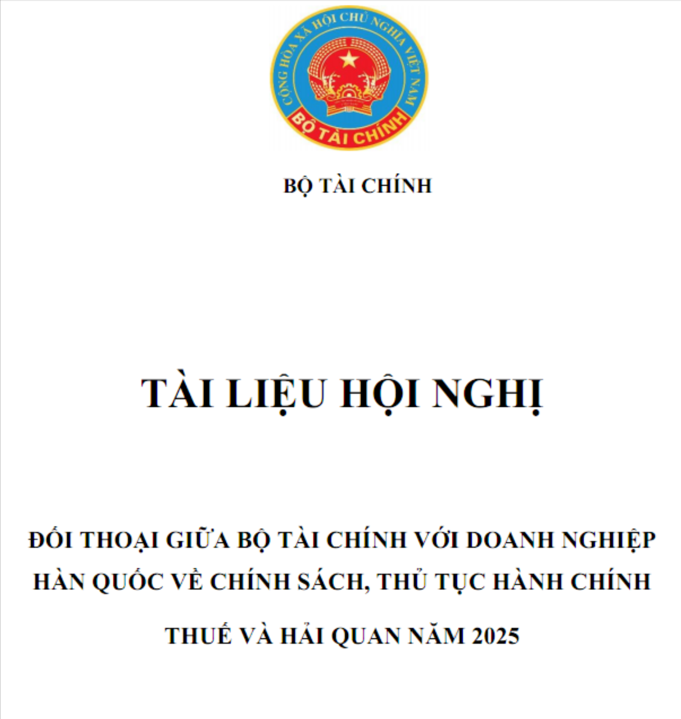 Bộ Tài chính phối hợp với Đại sứ quán Hàn Quốc tổ chức đối thoại với cộng đồng doanh nghiệp Hàn Quốc về chính sách thuế, hải quan; khoảng 50 doanh nghiệp tham dự. Mục tiêu là lắng nghe vướng mắc, cập nhật đầy đủ các quy định mới và tăng cường môi trường đầu tư minh bạch, ổn định. Dưới đây là Tài liệu tóm tắt chính sách thuế mới của Bộ Tài chính
