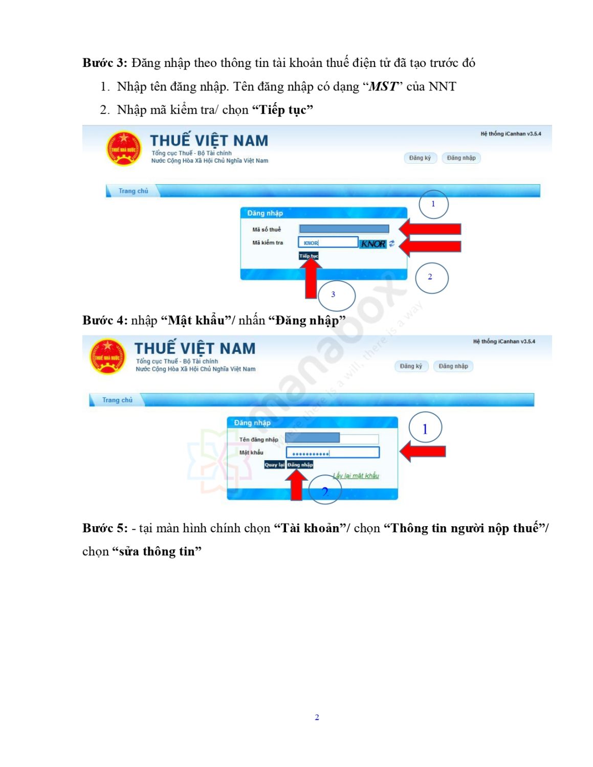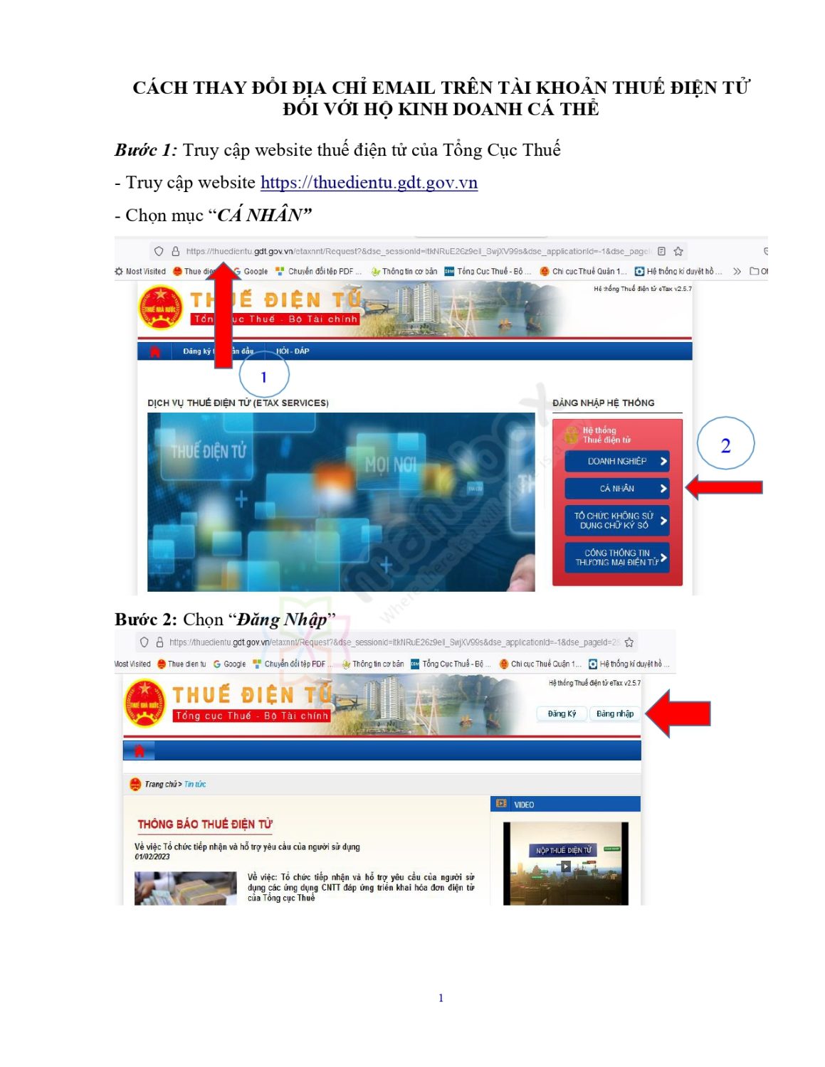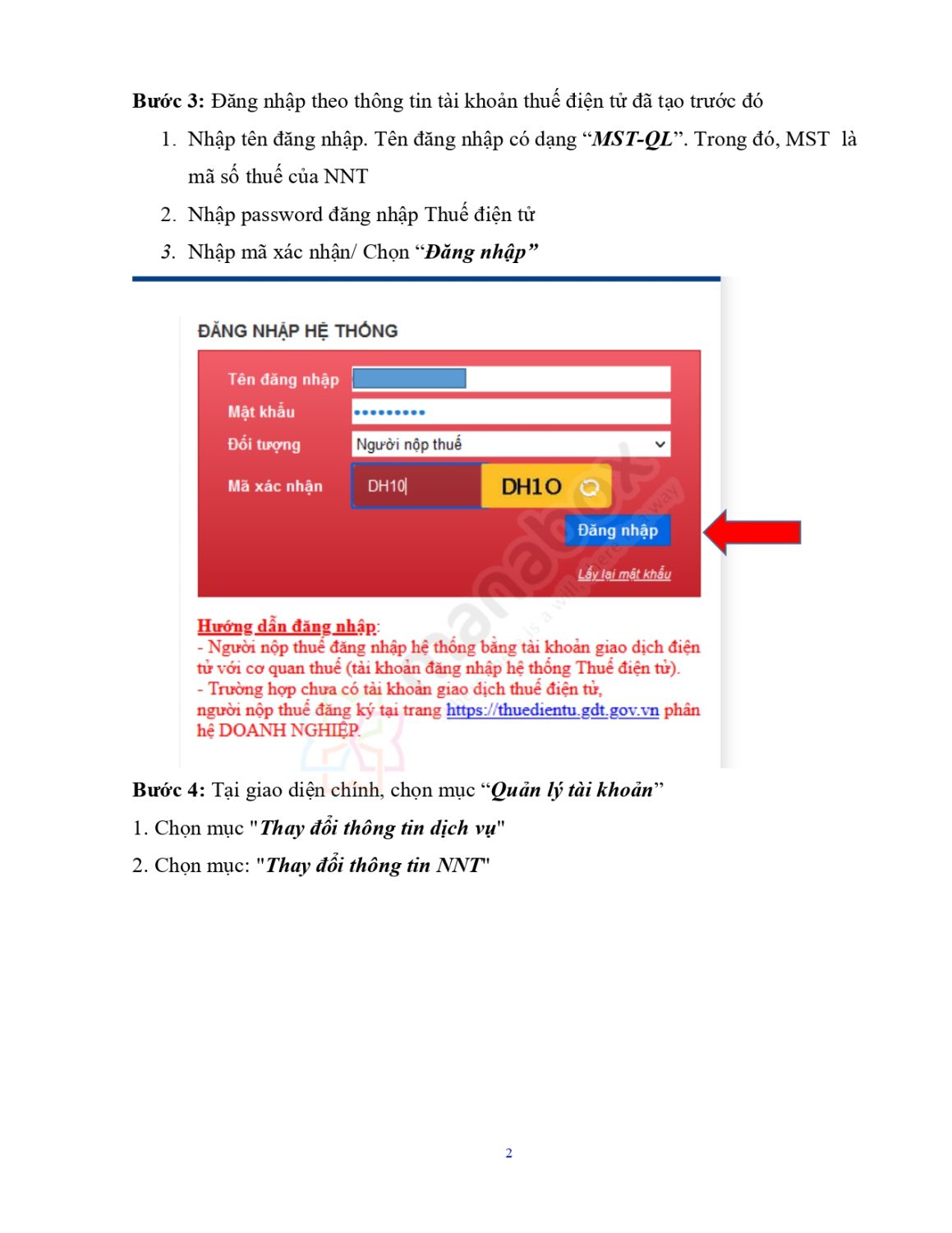 Đăng nhập tài khoản Thuế điện tử: