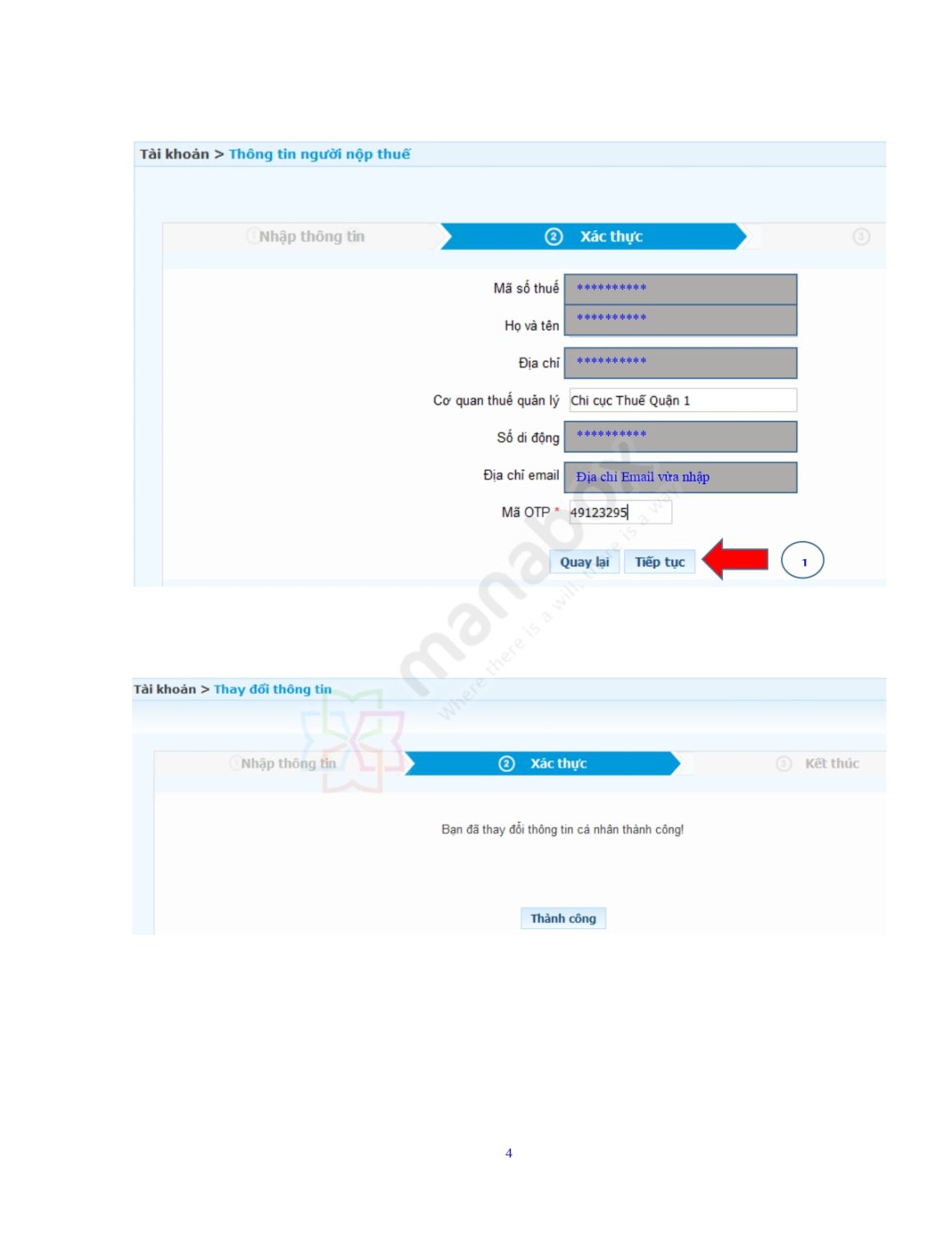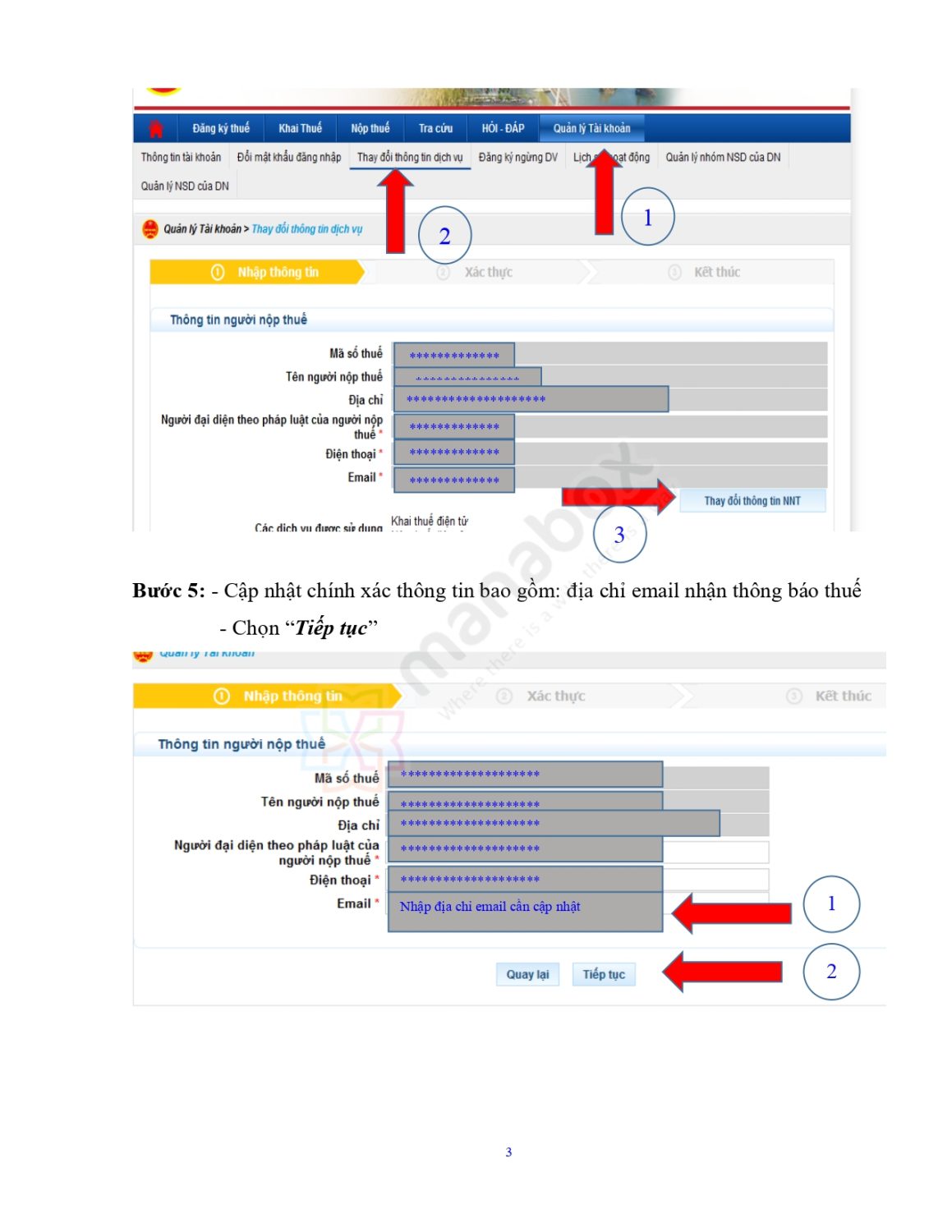 Cập nhật email nhận thông báo thuế → chọn “Tiếp tục”.