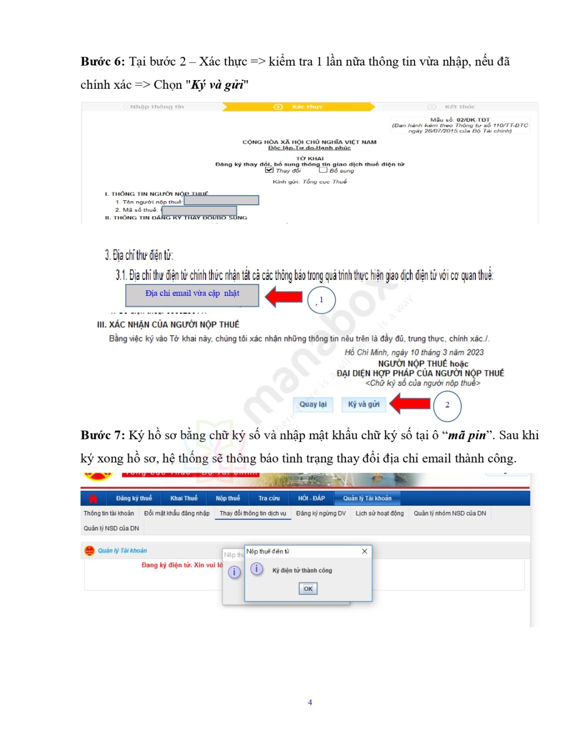 Ký bằng chữ ký số, nhập mã PIN → hệ thống báo thay đổi email thành công