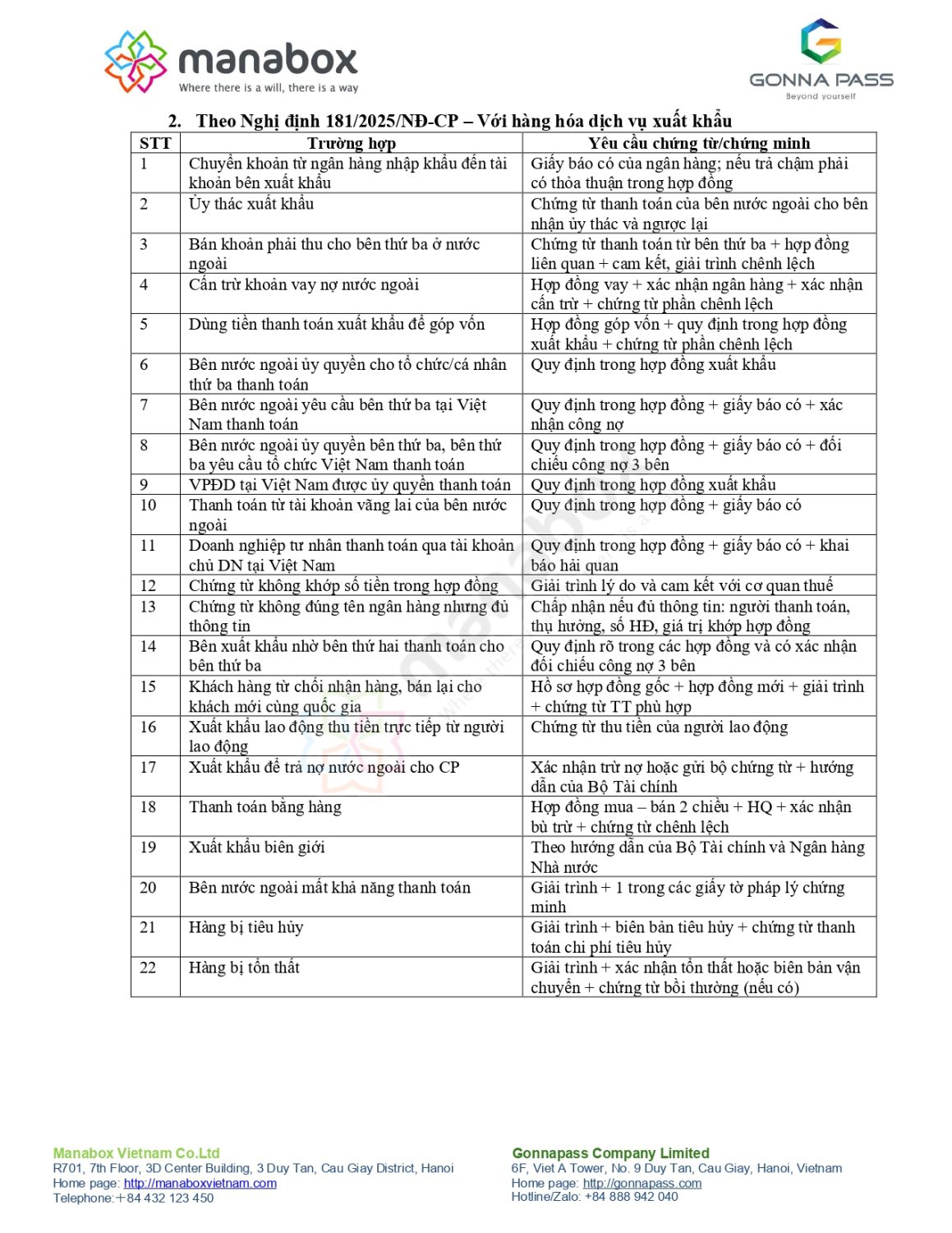 Theo Nghị định 181/2025/NĐ-CP – Với hàng hóa dịch vụ xuất khẩu